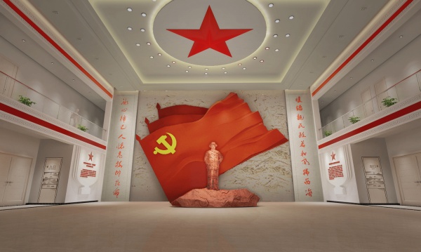 通過對時代楷模主題的凝練,展示尕布龍作為一名共產黨員的光輝形象。純潔的白色和共產黨人的本色奠定了序廳的基調。尕布龍同志的雕像靜靜地佇立在黨旗前凝望著草原。極致的空間設計,詮釋出他崇高理想信念,一生求索,為人民服務!
